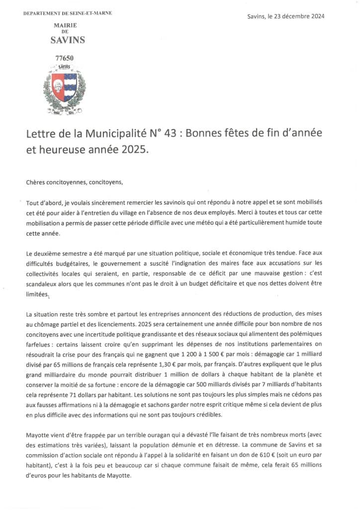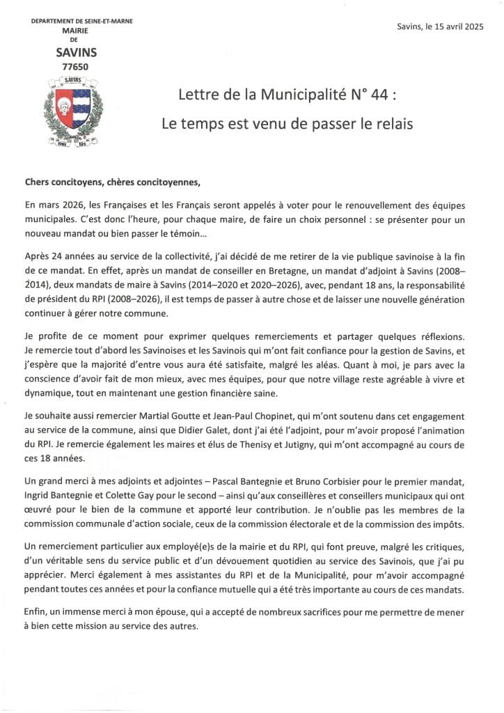 Découvrez l’ensemble de l’actualité de la commune de Savins, et restez informés en tant que citoyen et citoyenne de ce qu’il se passe sur votre commune !